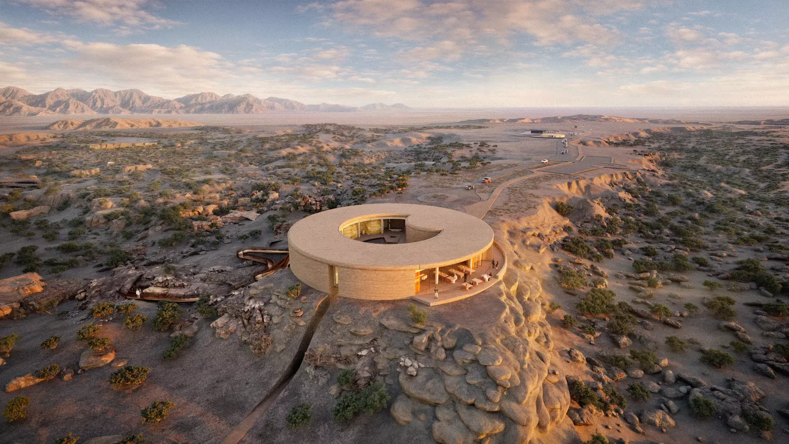 The circular building is conceived as a continuation of its environment. Designed by Giò Forma Studio (Milan), its shapes, colours and textures draw deeply from the language of the Dhofari landscape.
